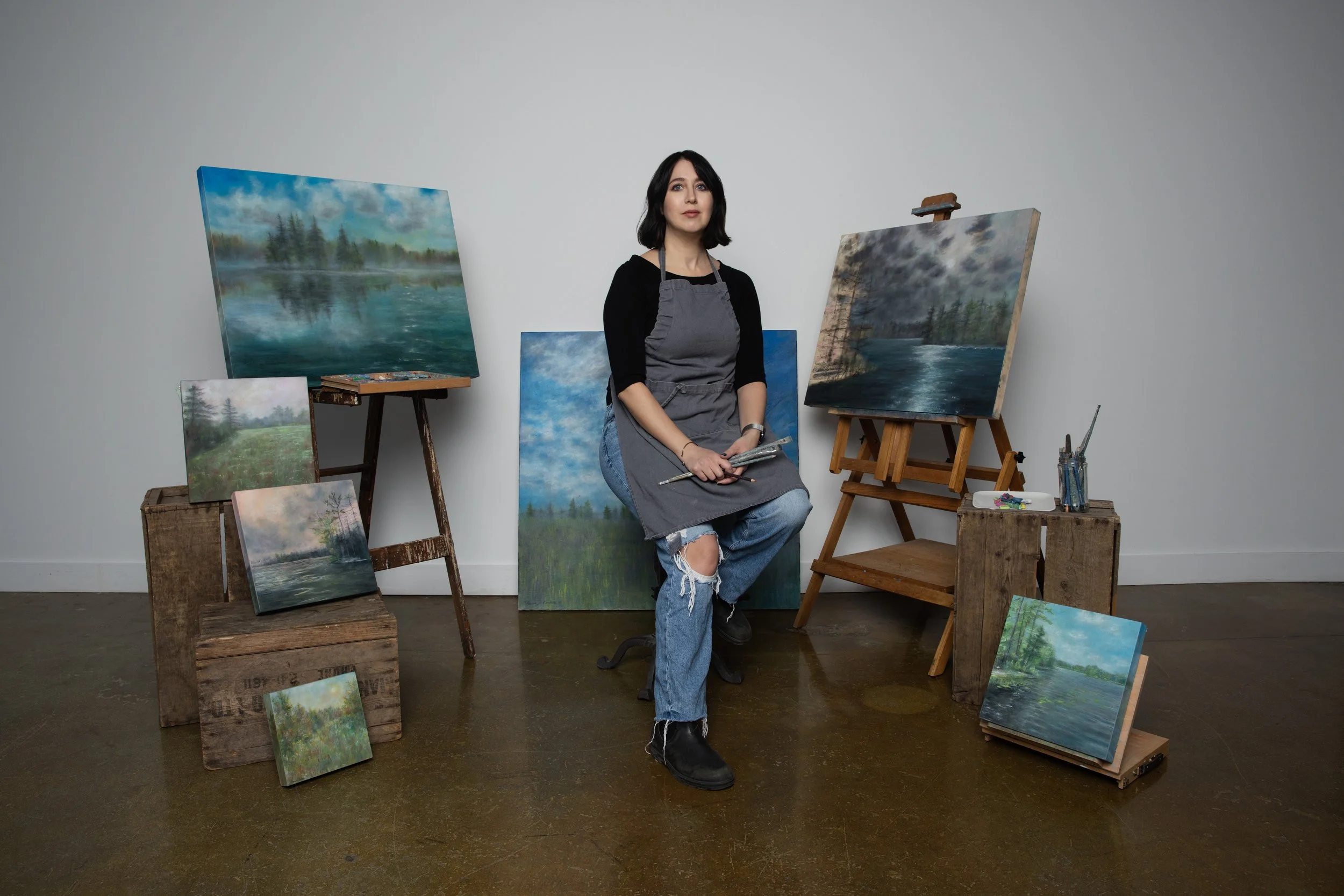 Charina Koraksic is a contemporary, impressionist landscape artist living in Burlington, Ontario. She captures the fleeting beauty of nature through oil pastels and cold wax medium, focusing on texture, light, and atmosphere. Her process involves layering these materials to evoke depth and mood, drawing inspiration from quiet, reflective moments in the natural world.